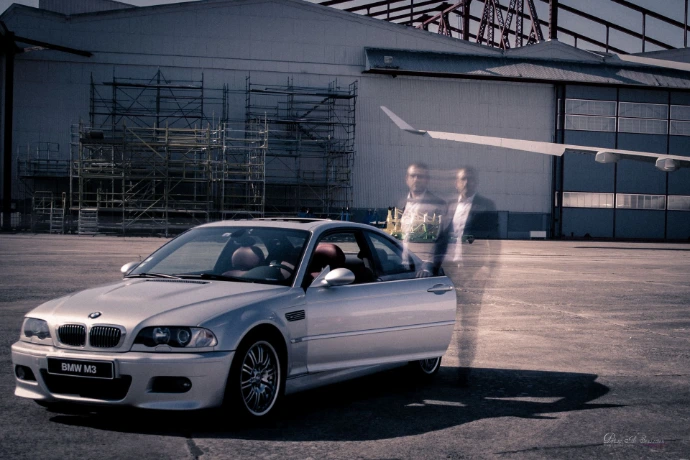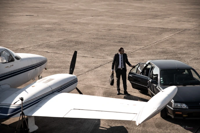 Puis, j'ai rencontré mon second client, Pascal Girard, ancien directeur de BMW-Axia et passionné d'automobile. Il m'a parlé de son projet de reconversion et j'ai immédiatement imaginé des mises en scène cinématographiques, loin des photos commerciales classiques. Je rêvais d'une scène digne d'un grand film d'action hollywoodien, avec des avions partout. Au début, mes idées semblaient folles, mais il a fini par se laisser emporter par mon enthousiasme.